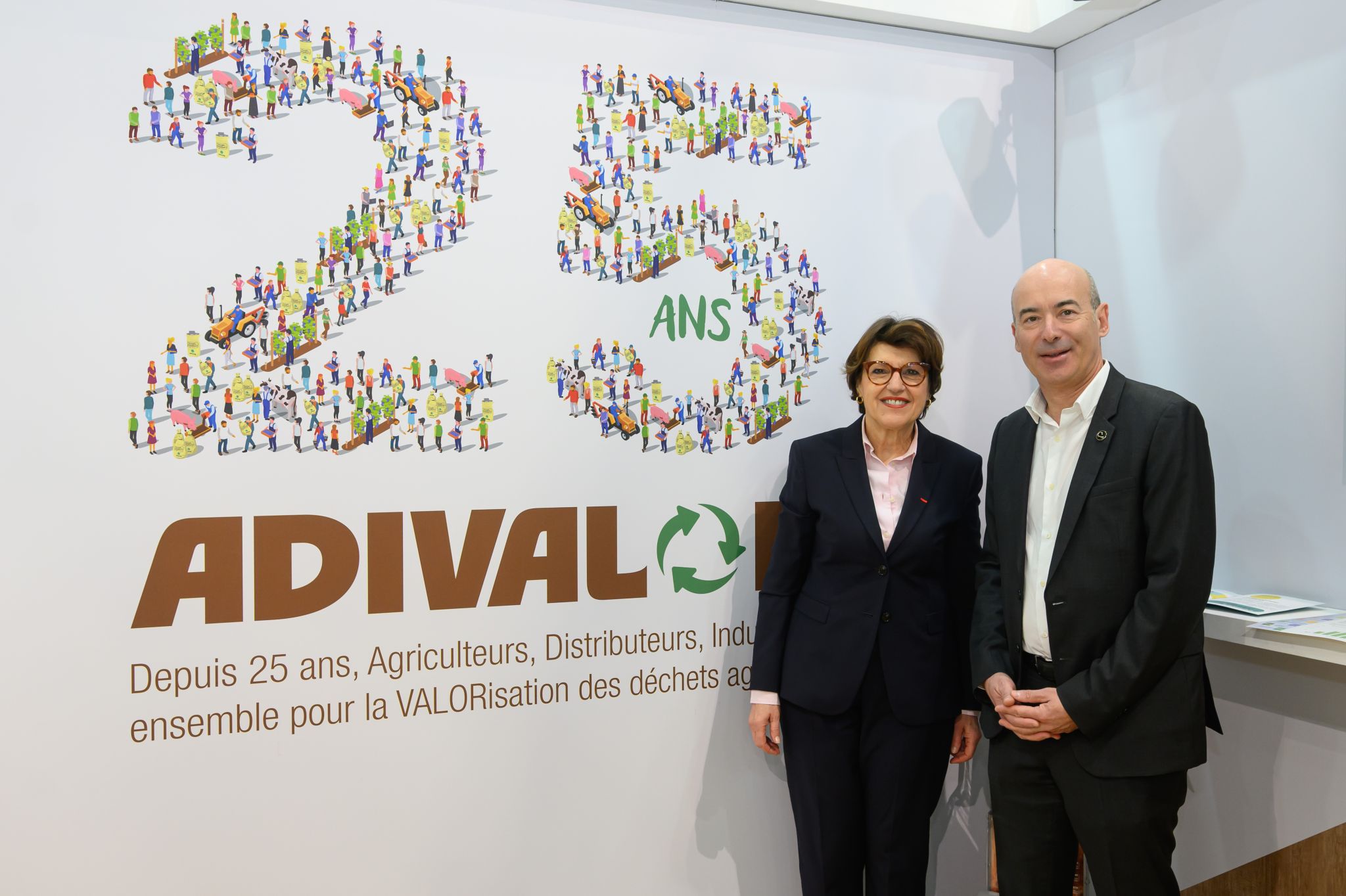 Pendant les neuf jours du Salon, les équipes d'A.D.I.VALOR ont notamment accueilli Annie Genevard, ministre de l'Agriculture, ainsi que les deux anciens ministres, Stéphane Travert et Julien Denormandie. Yann Wehrling, vice-président à la transition écologique de la Région Île-de-France et une délégation du Conseil Économique, Social et Environnemental ont également fait le déplacement. De nombreux représentants de coopératives, de négoces, d’interprofessions, de metteurs en maché et des agriculteurs ont évidemment aussi été accueilli sur le stand pour célébrer les 25 ans de la filière.