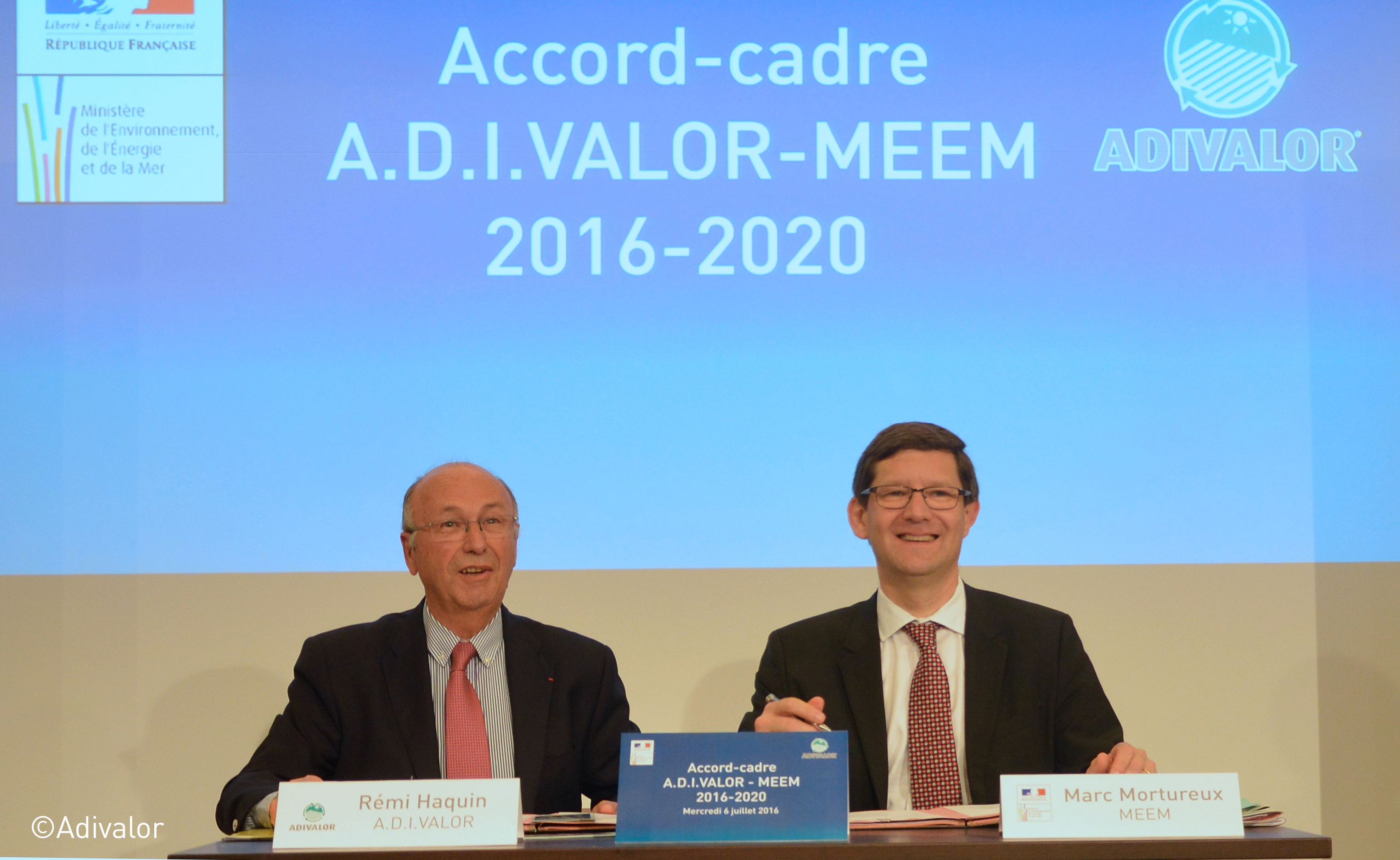 Signature of 2016-2020 framework agreement : Rémi Haquin (A.D.I.VALOR) and Marc Mortureux (Environment Ministry)
