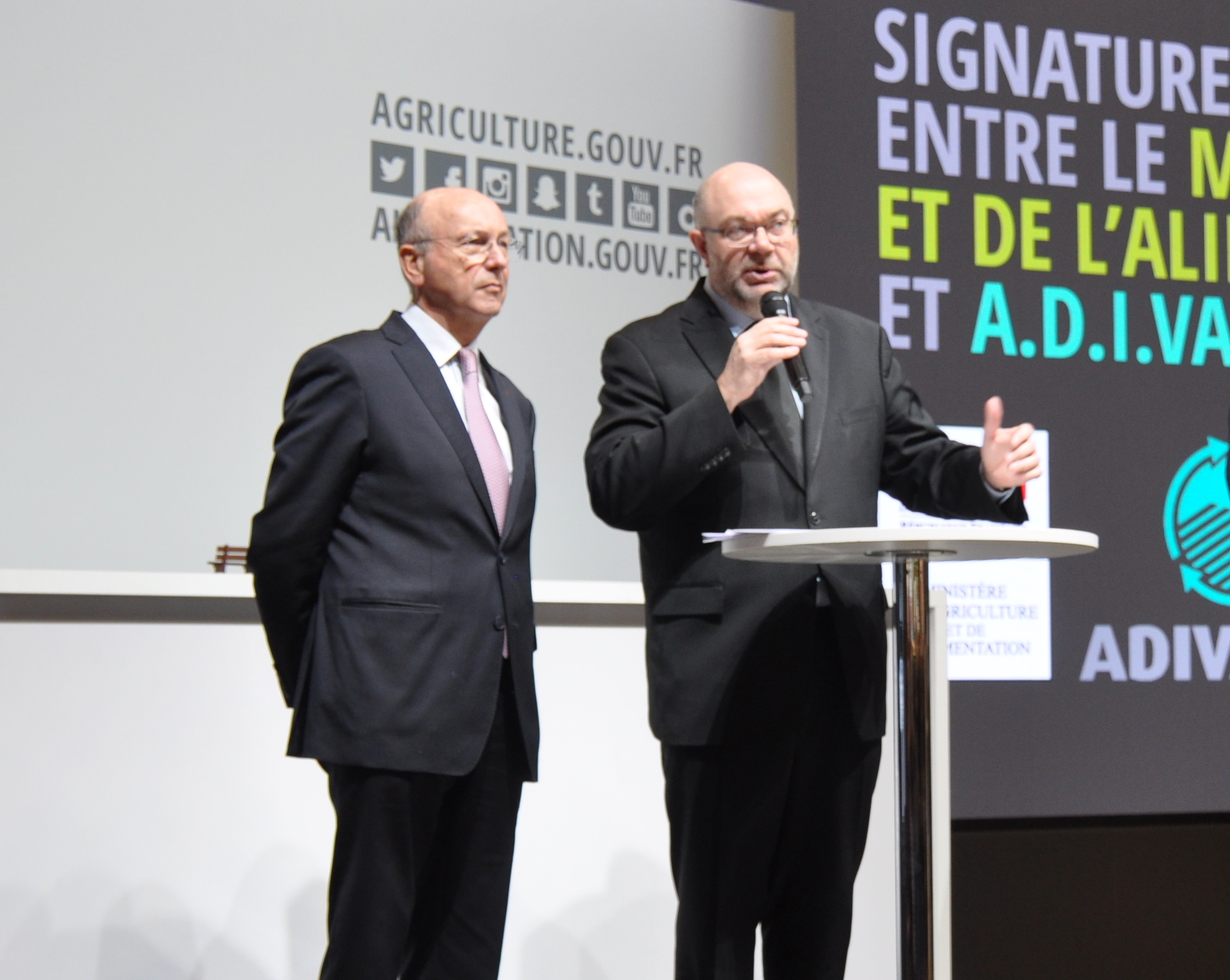 Rémi Haquin, A.D.I.VALOR's chairman and Stéphane Travert, Ministry of Agriculture and Food - signature 2018-2021 framework agreement