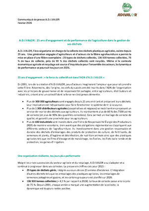 Les entreprises de nutrition animale agissent pour le recyclageLes trois syndicats de nutrition animale, l’AFCA-CIAL, le SNIA et la Coopération Agricole Nutrition Animale lancent un projet de création de filière pour la collecte et le recyclage des déchets, en coopération avec A.D.I.VALOR.